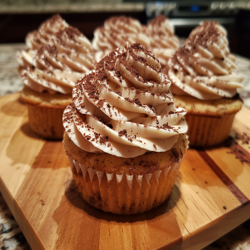Moist coffee-flavored cupcakes topped with a mascarpone frosting, inspired by the classic Italian tiramisu dessert.