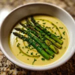 A silky, plant-based cream of asparagus soup infused with delicate spring flavors and topped with a drizzle of fragrant chive oil. This elegant vegan soup is both comforting and refreshing, perfect for a light lunch or dinner starter.